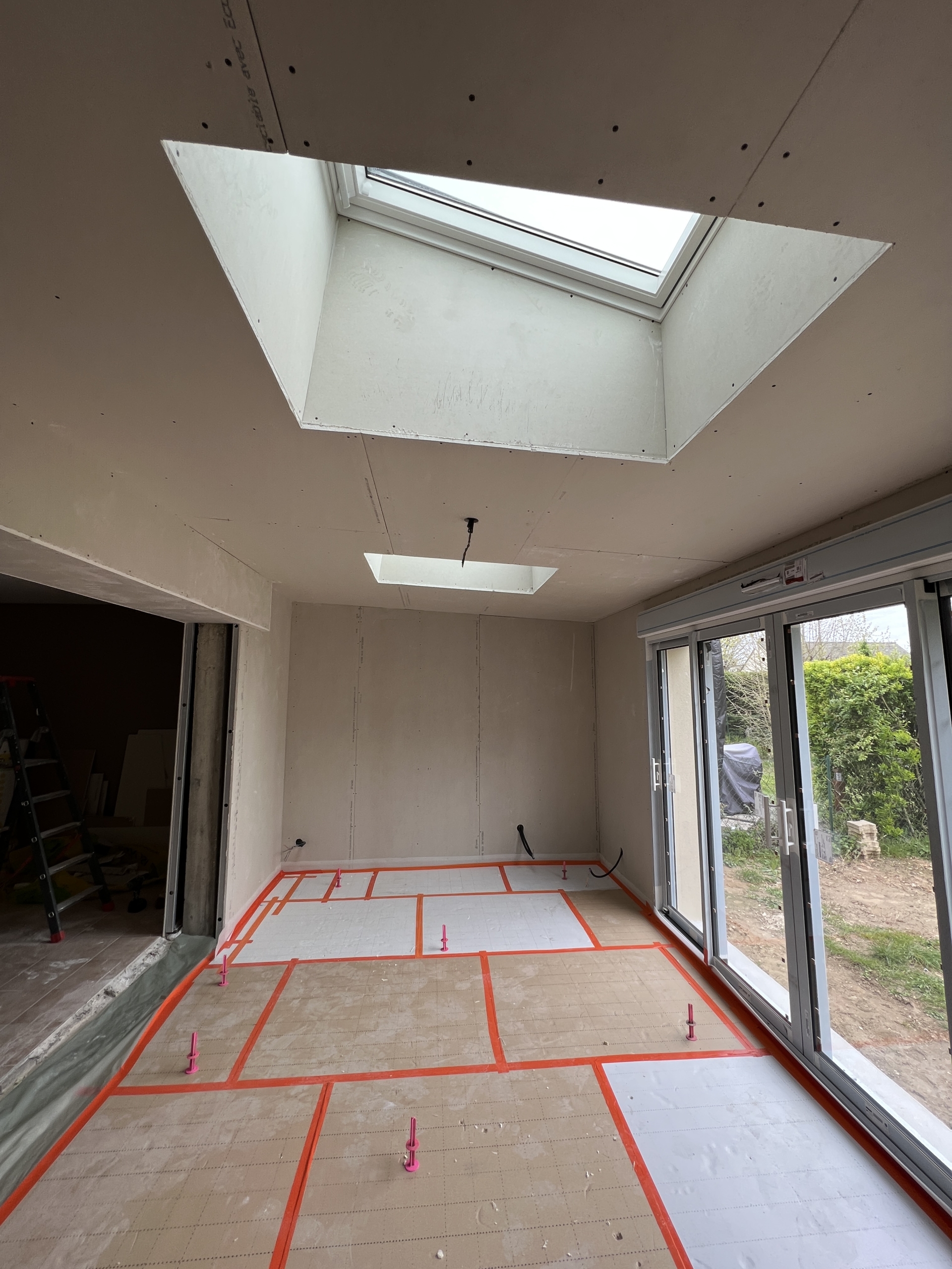 Nous avons réalisé une isolation complète des murs, du sol et du plafond afin d’assurer un excellent confort thermique et acoustique. Chaque détail a été pensé pour que cette nouvelle pièce soit aussi agréable qu’une chambre construite à l’origine.